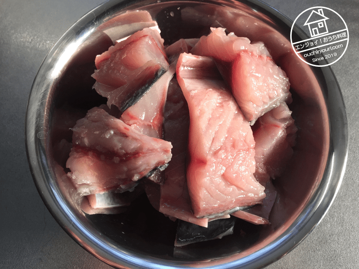 骨を取り除き、一口大に切りました。中骨からスプーンでこそぎとった中落ちを刺身で食べたら大トロみたいで美味しかったです。