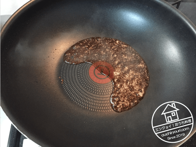 普通の大学芋を作ります。鍋に蜂蜜、味醂、醤油をとり、ひと煮立ちさせてアルコール分を飛ばします。醤油は少量の隠し味に留めておく方が良いです。醤油が多いとクドくなってしまいます。