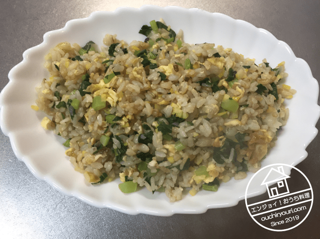 柚子と大根葉のチャーハンの出来上がりです。そのままではそこまでではありませんでしたが、味の素と唐辛子を振ったらガチンとキマリました。柚子は唐辛子と相性が良いです。