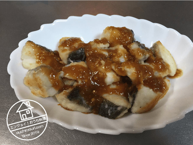 鱈のムニエルの柚子味噌ソースです。なかなかいけます。予想以上に柚子味噌が美味しかったです。写真はありませんが、おでんの大根と柚子味噌の相性が抜群に良かったです。