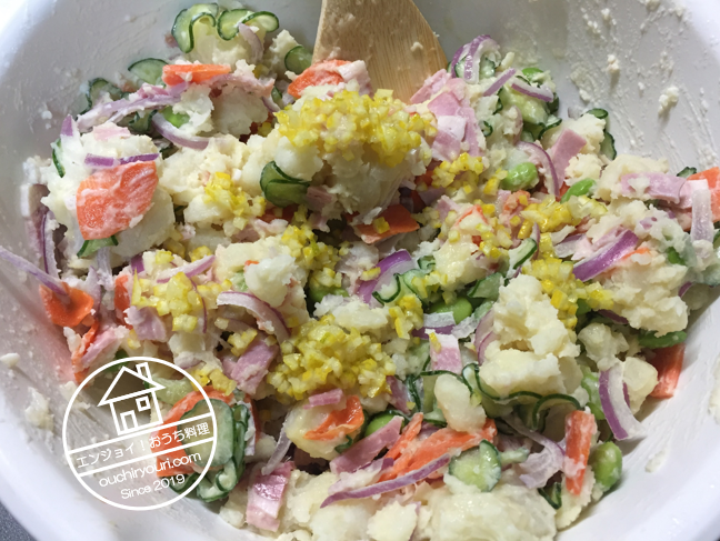 ポテトサラダにも柚子の皮と果汁を加えてみました。さっぱりとしたポテトサラダになりました。