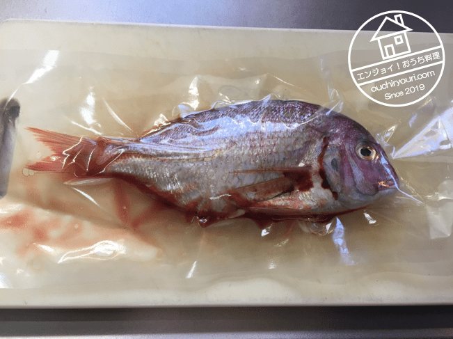 冷凍の天然真鯛です。一晩かけて解凍しました。