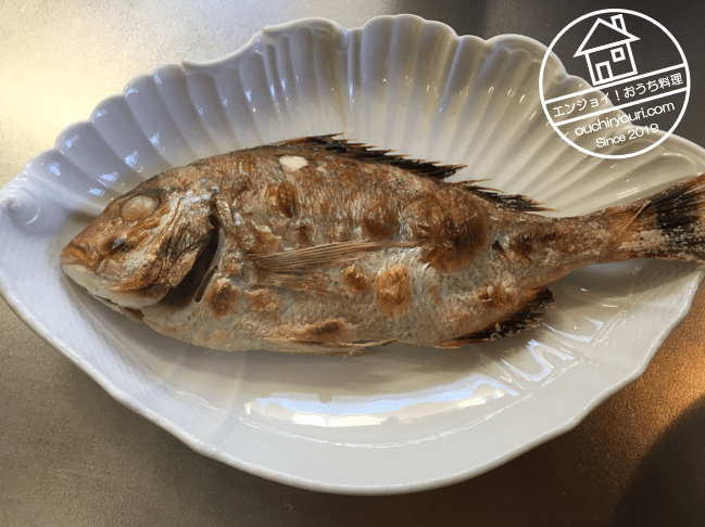 水洗いして血を流し、水を拭き取ってから塩をします。ヒレには化粧塩をして焦げ防止をしました。焼き魚は塩をしたらすぐに焼くのがコツです。少しでも時間が経つと「塩漬け魚」になってしまい身のふっくら感がなくなってしまいます。