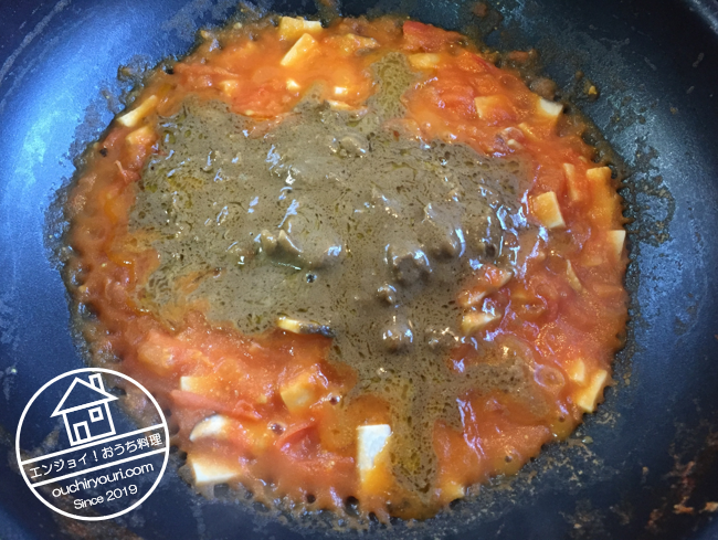 イカ肝をトマトと合わせてみました。白いのはエリンギです。