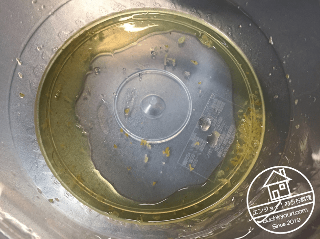 そんなときの必殺技がこれ。サラダ用の回転水切り機です。天ぷらを籠に入れぶん回すと遠心力で油を切ることができます。写真の量の天ぷらからこんなにも油が出ました。おかげで天ぷらはさくっと軽く食べられるようになりました。とても美味しかったです。家族にも好評でした。
