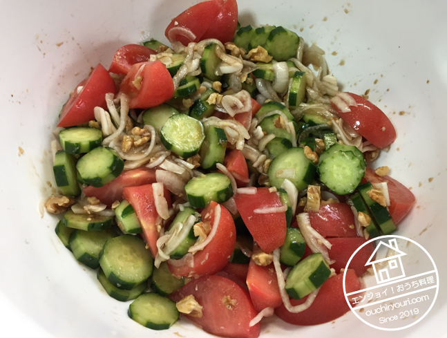 少し時間をおいて調味料が馴染んだらコーカサス風サラダの完成です。