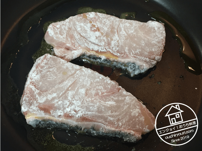 素材の味を知るためにムニエルにしました。塩焼きが最もシンプルですが、脂を落としたらもったいないと思いムニエルにしました。塩はしておらず小麦粉をまぶしてオリーブオイルでくだけです。