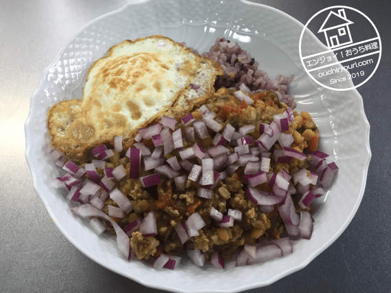 バターチキンカレーをアレンジした表題のものを作ります。ダルコルマカレーに使った下茹で済みの豆が半分余っていたので、それを使いました。豆はたんぱく質と食物繊維が豊富なうえに安価なので積極的に使っていきたいと思っています。