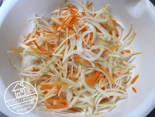 ハヤシがほぼ完成しました。ブラウンルーだけではトロミが足りなかったので、水溶き片栗粉でとろみを補強しました。ブラウンルーは倍必要でした。
